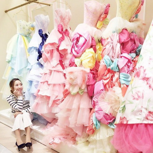 除了層疊系的多彩禮服之外,這類花朵風的禮服也非常迷人!超美